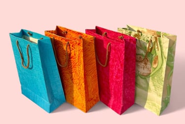 Offering a splash of brightness and hues, Handmade paper gift bags by ochrello.