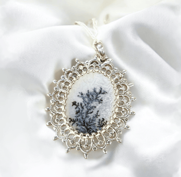 These are natural gemstones known as shazar or dendritic agate. The word shazar is rooted in the Arabic word Shazar meaning tree. it is a dendritic agate formed by gradual entrapment of algae and other trace minerals into silica stones, It is a gift exclusive to the Ken river: A local myth suggests that the river takes an imprint of anything that stays still in front of it very long. Polishing of this stone is only done in Banda. Here the stone is encased in a frame of sterling silver: The subtle beauty of this Stone makes it ideal for any formal or casual occasion. Due to the nature of its formation, no two stones are similar, making this, a truly one of a kind.